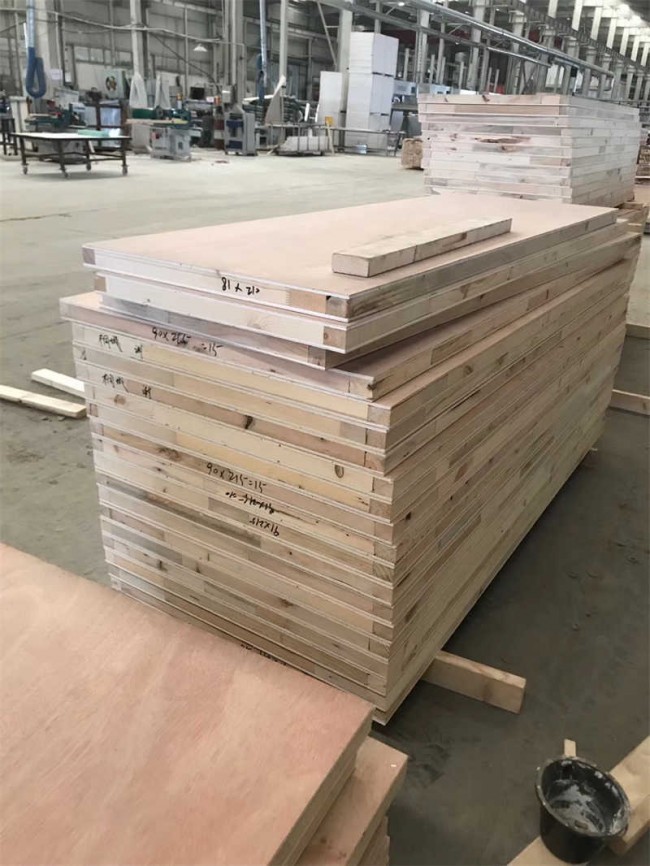 3)門扇面板:由二塊飾面膠合板組成,與門扇芯板、骨架緊密膠壓組成一個整體門板。在結(jié)構(gòu)上實(shí)現(xiàn)“對稱原則”和“奇數(shù)層原則”,使產(chǎn)品結(jié)構(gòu)對稱、應(yīng)力均勻、形狀尺寸穩(wěn)定。